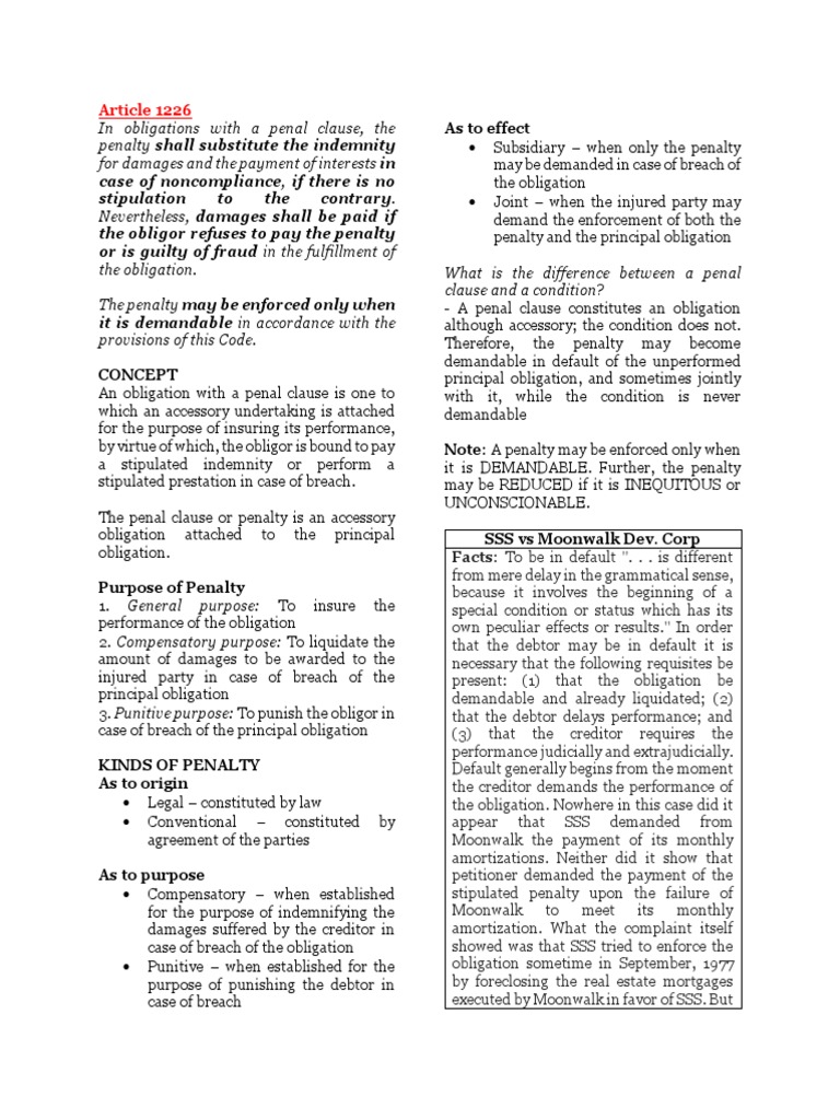 Example Of Obligation With A Penal Clause / ARTICLES 1226 1230 Obligations with a Penal Clause Case 39 ... : It is a moral responsibility to do something.